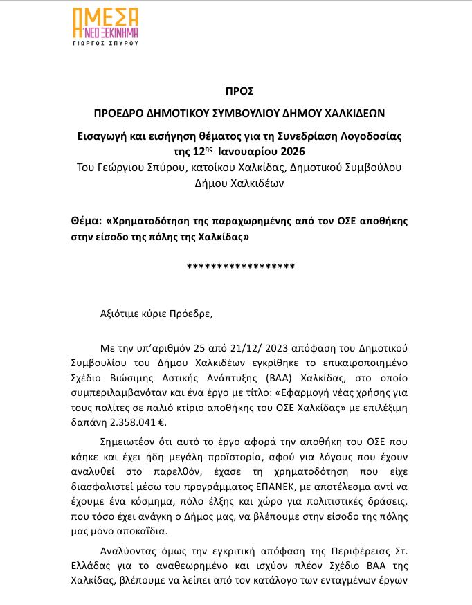 📍Στην επόμενη συνεδρίαση λογοδοσίας του δημοτικού συμβουλίου που θα γίνει την ερχόμενη Δευτέρα, ζητάμε να λογοδοτήσει δημοτική αρχή ποιός, πότε, γιατί και με ποιά εξουσία ή αρμοδιότητα, αποφάσισε να γράψει την απόφαση του δημοτικού συμβουλίου στα παλιά του τα υποδήματα και να αποσύρει αυθαίρετα το έργο από το ΣΒΑΑ της Χαλκίδας.