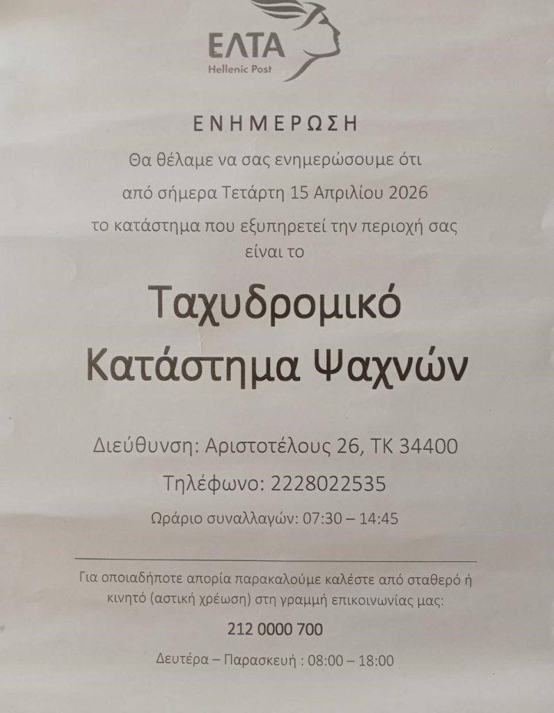 Πλέον οι κάτοικοι της δημοτικής μας ενότητας της Νέας Αρτάκης υποχρεώνονται να εξυπηρετούνται μέσω του υποκαταστήματος του Δήμου Μεσσαπίων, με ό,τι αυτό συνεπάγεται για την ταλαιπωρία τους σχετικά με πληρωμές, τραπεζικές συναλλαγές, συντάξεις και παραλαβές δεμάτων, οι οποίες σε πολλές περιπτώσεις αφορούν συνανθρώπους μας, που είναι υπερήλικες και έχουν δυσκολία στις μετακινήσεις.